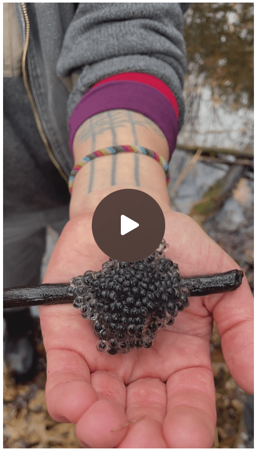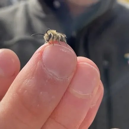 As if the frog song and jiggly eggs weren’t enough spring magic for one day, despite still being bundled in puffy coats and knit hats, the first bee of the season appeared. It landed right on one of our barn handouts. Impromptu bee lesson time! It was a male cellophane bee – typically the first bee species to emerge in Vermont each year, a true harbinger of spring. Always a joy-filled moment to know they’re back.