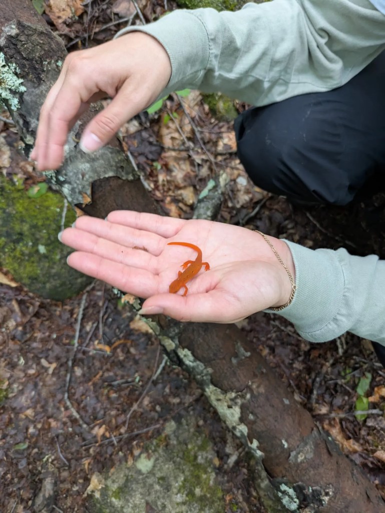 Me holding one of the many newts we spotted in the forest on our way to the bog