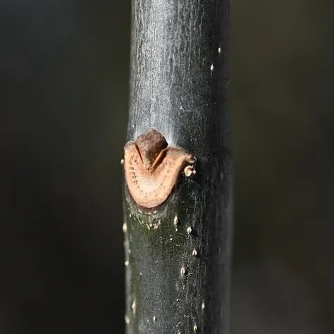 leaf scars from left to right, top to bottom: shagbark hickory, basswood, white ash, black walnut, red oak, another shagbark hickory