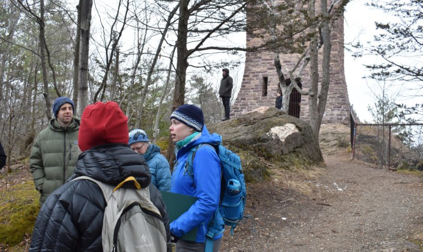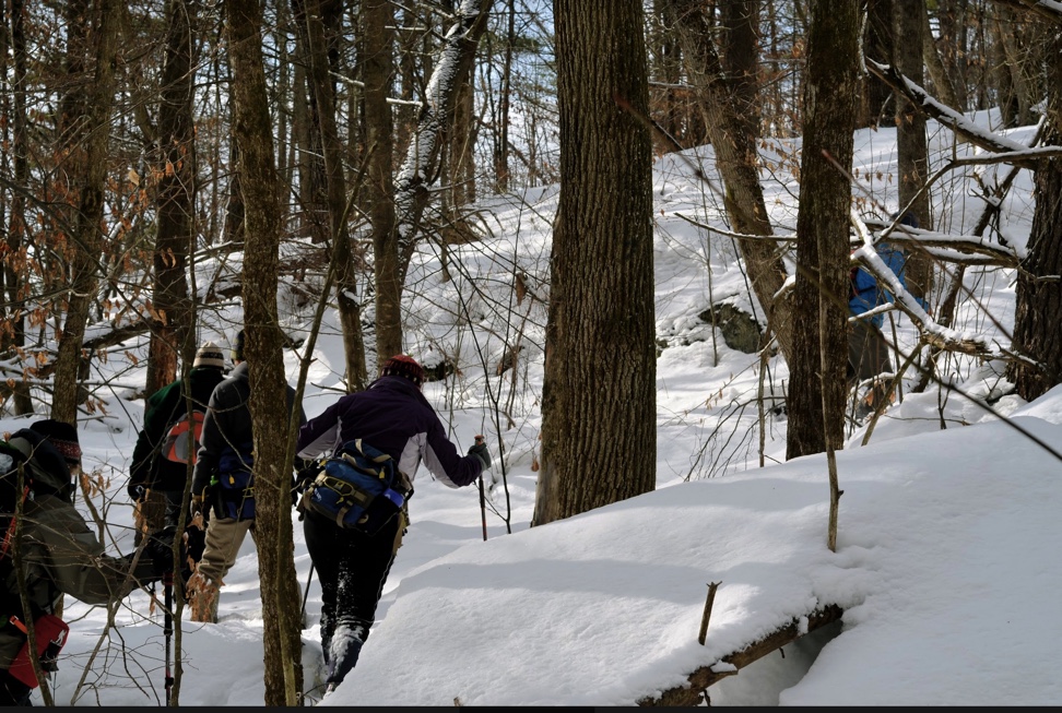 During the winter session, Vermont Master Naturalists study the post-glacial landscape, taking advantage of the season to track wildlife and study the bark and buds of winter trees.