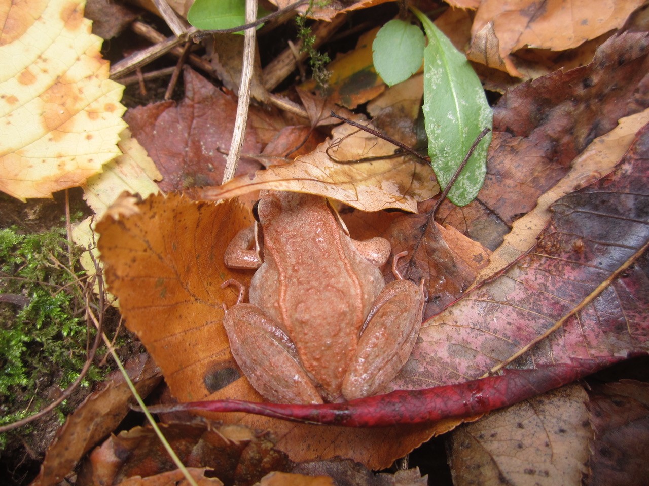Yellow Warbler (photo by Sean Beckett) and Wood Frog (photo by Shelby Perry)