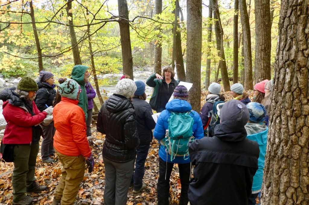 Samantha Ford leads VMN Burlington naturalists on an exploration of Ethan Allen Park. (Photo by Becca Harris)