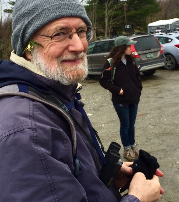 The smell of the damp earth and the trickle of running water return to the forests. Vermont Master Naturalists soak up the signs of spring on walks through the wild places in their towns. Vermont Master Naturalists in Williston spend a day keying wildflowers while leaving them in place (flower in the photo above was from a yard garden) and watching birds (photo by Cheryl Dorschner.)