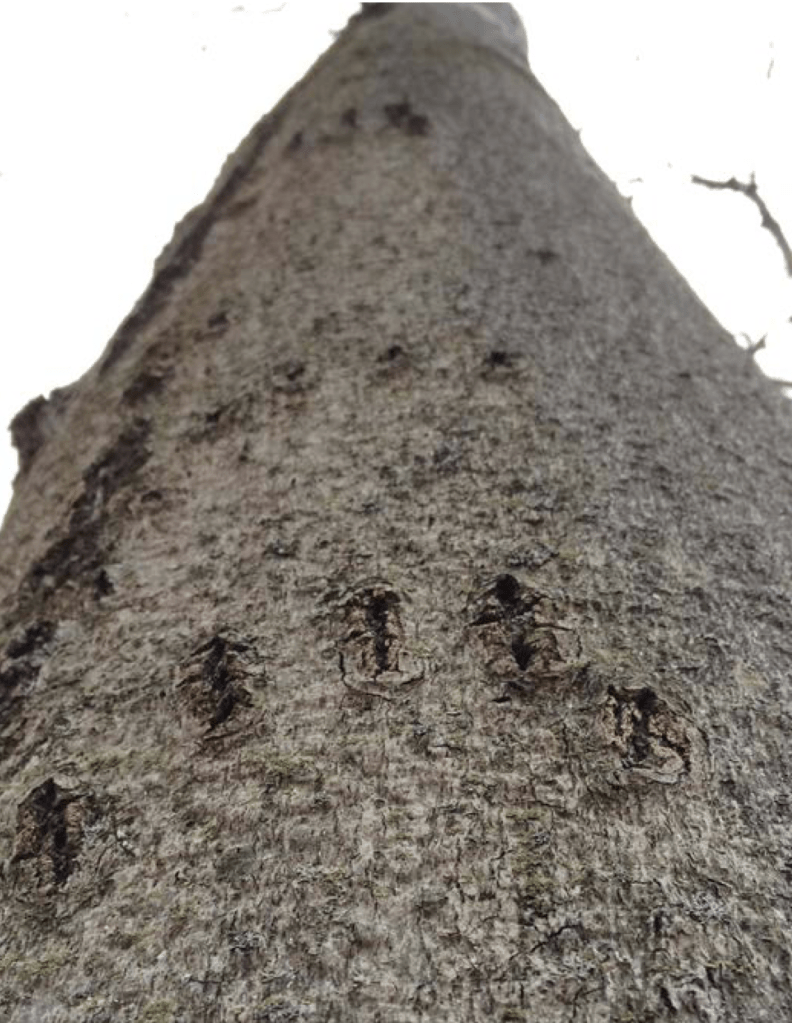 A squirrel stripe on a black locust trunk at Ethan Allen Homestead.